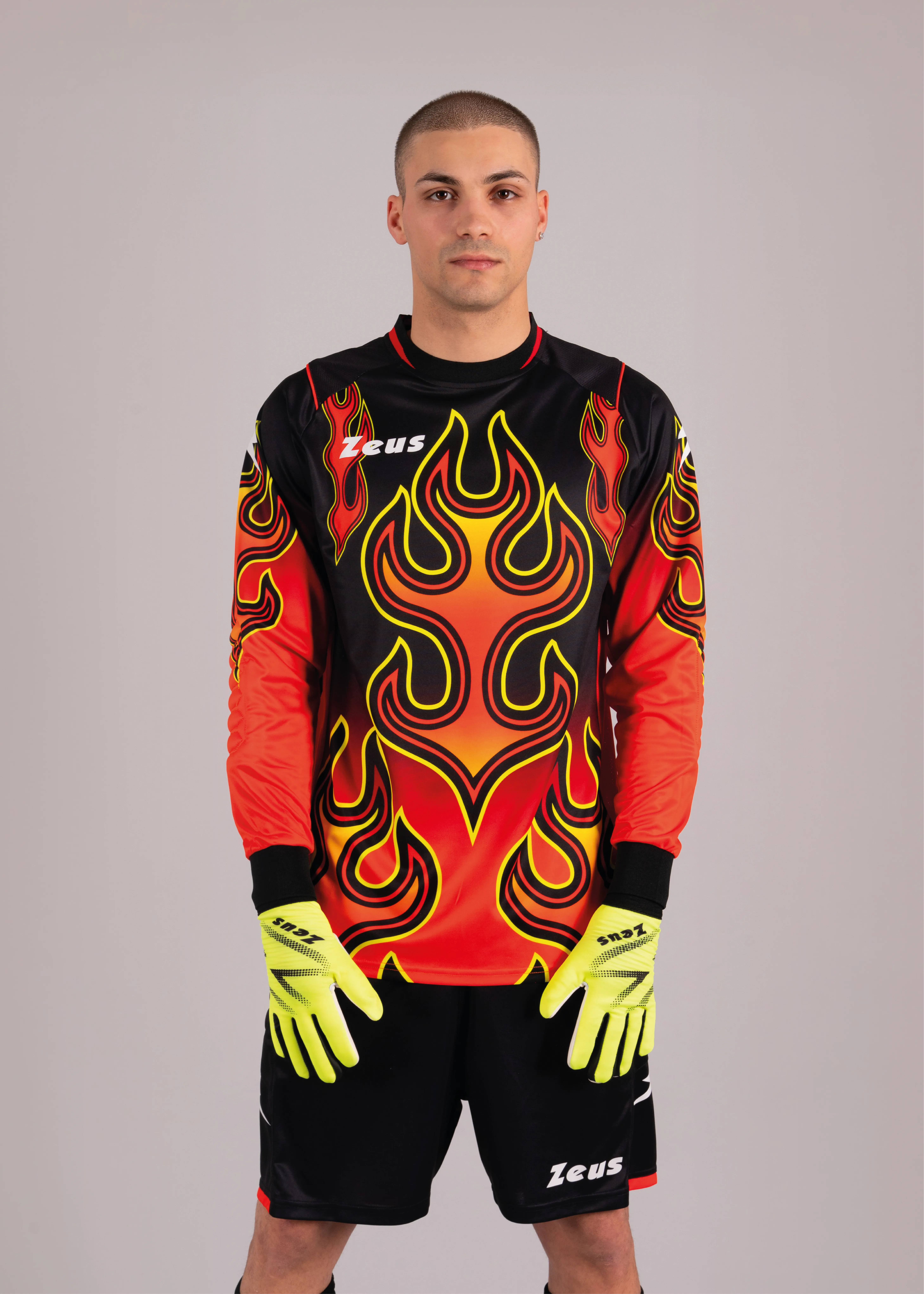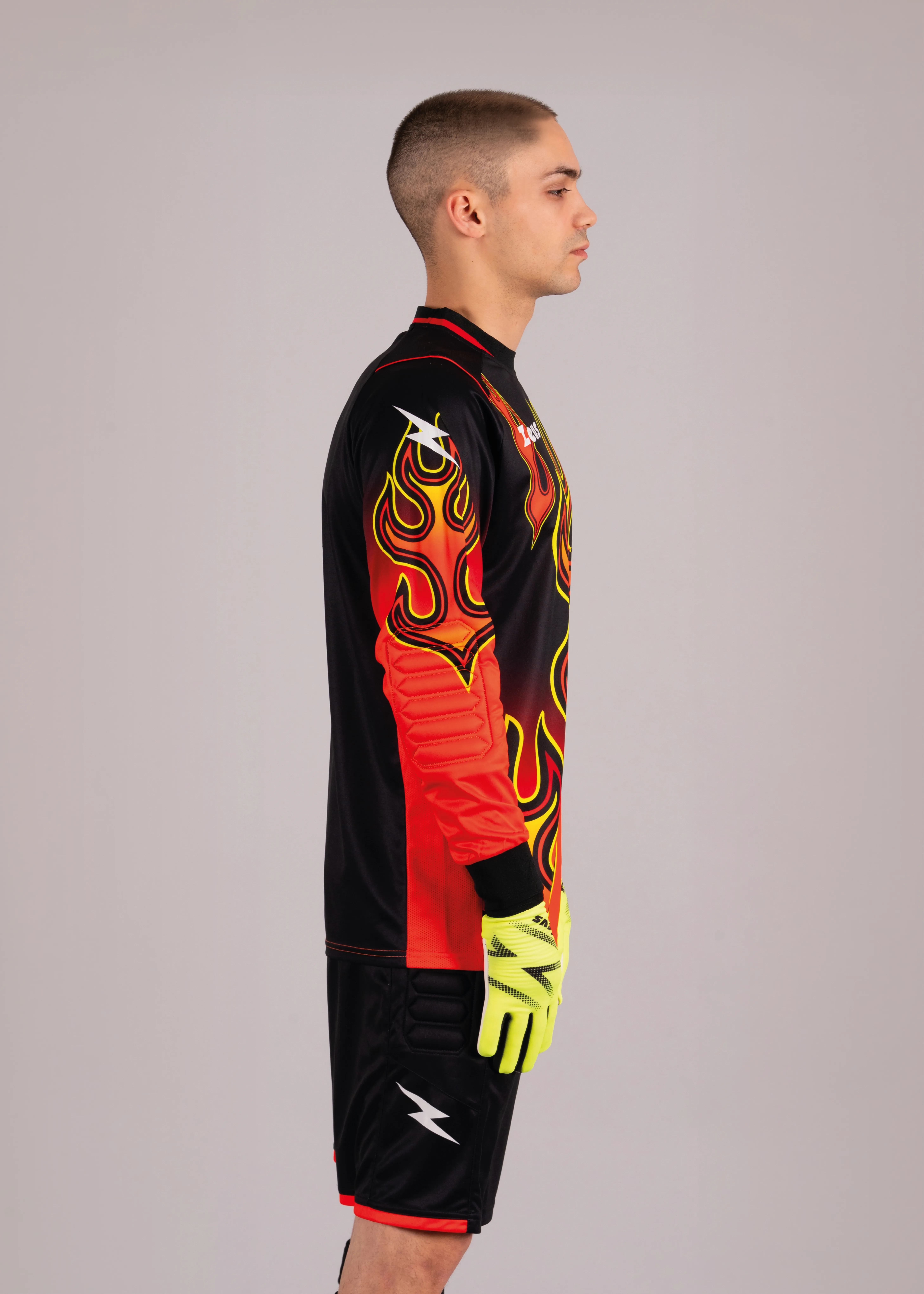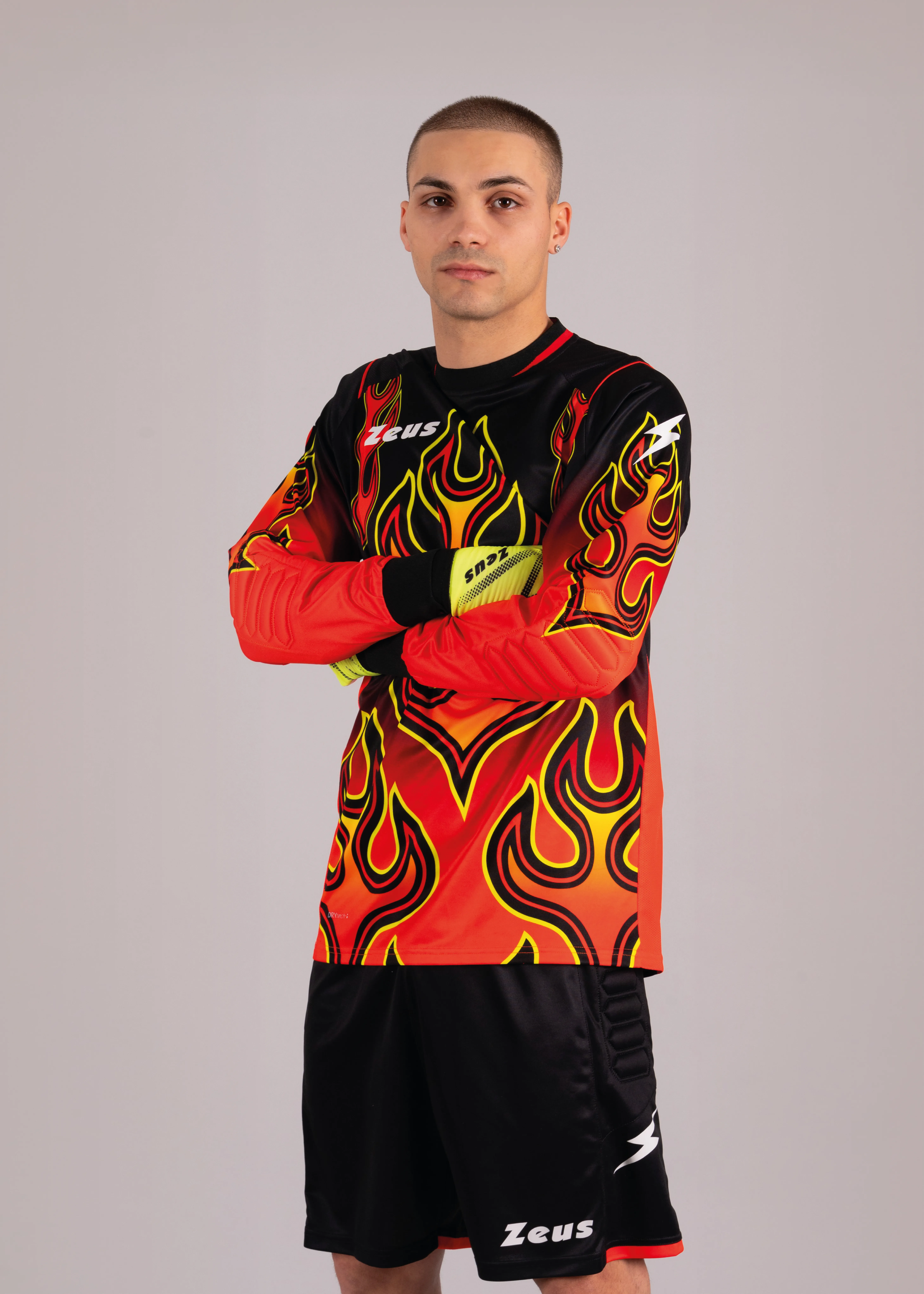 Goalkeeper kit that celebrates football's glorious past, reimagined with modern technologies and inspired by iconic designs. Reinforced zones on the elbows and lateral padding on the shorts.