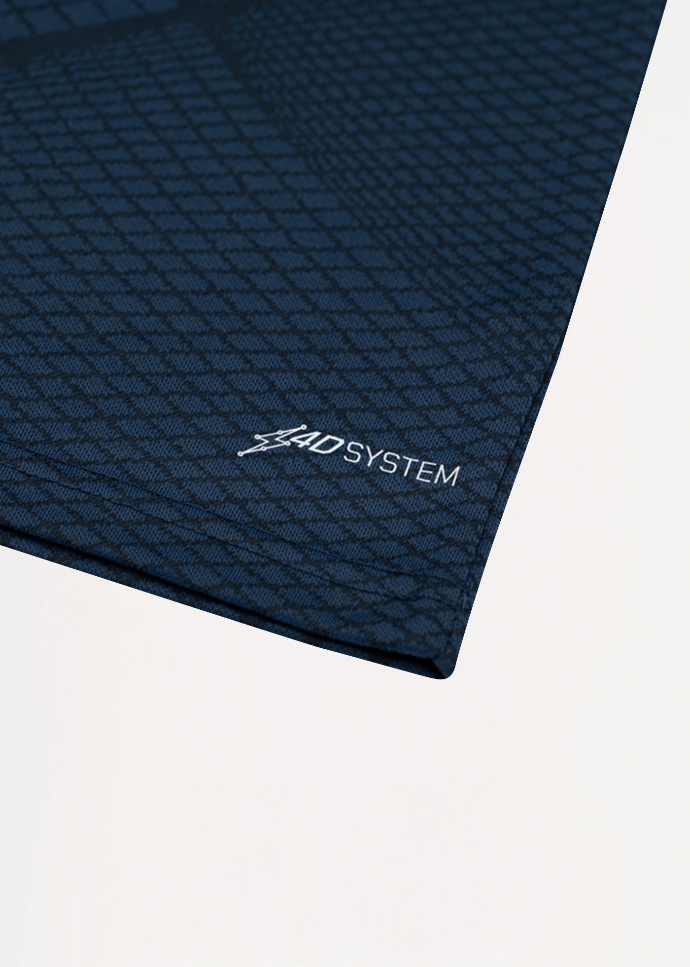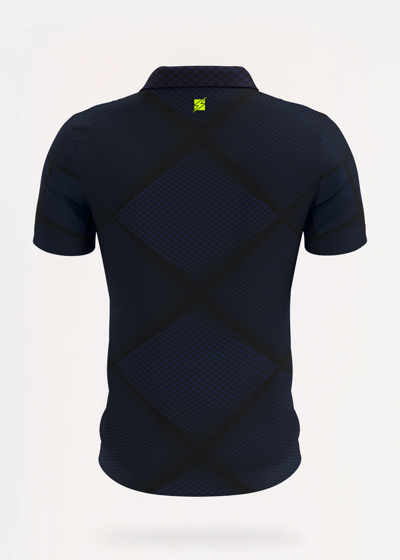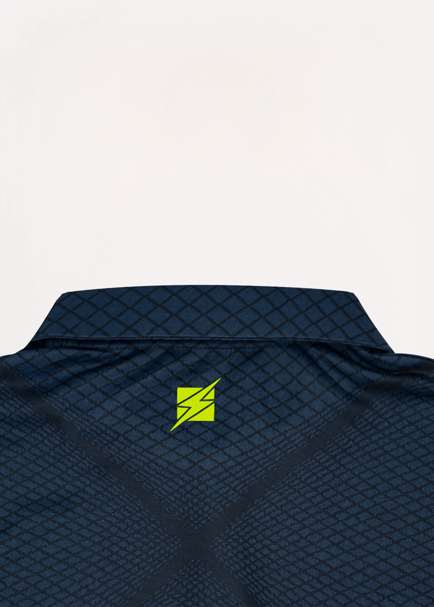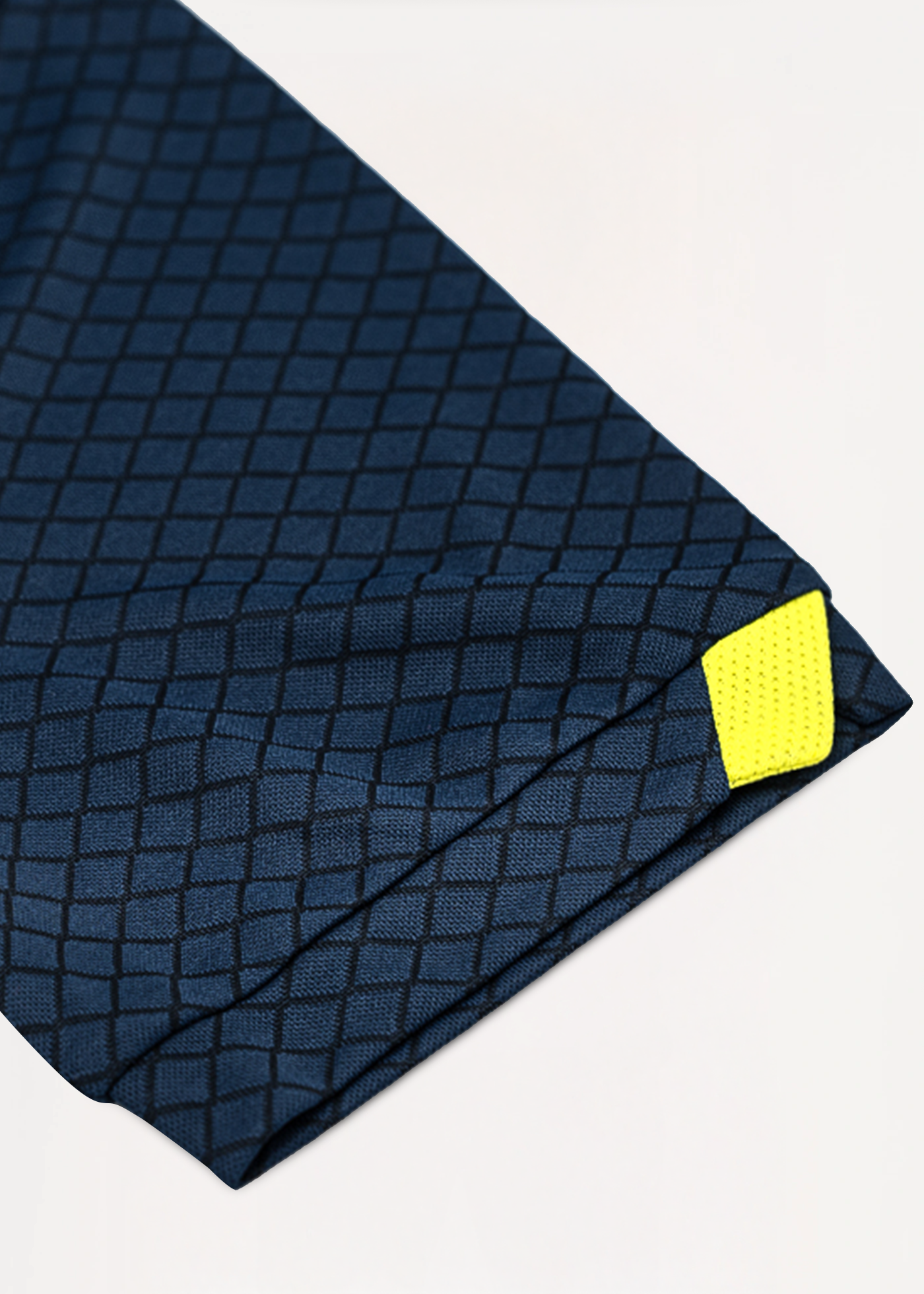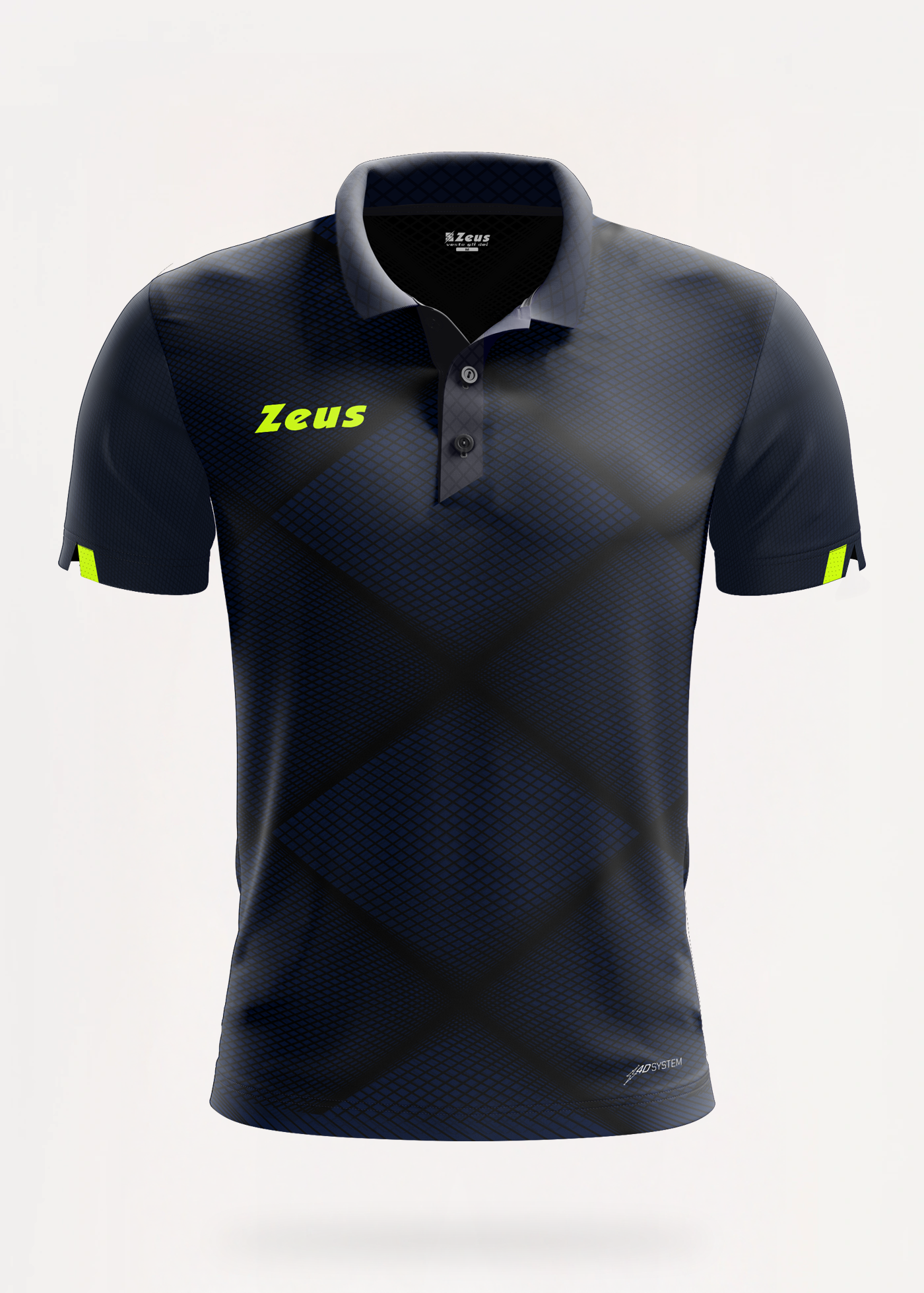 Short-sleeved polo shirt featuring a sophisticated and elegant jacquard diamond pattern. Button-down collar, silicone Zeus logo.