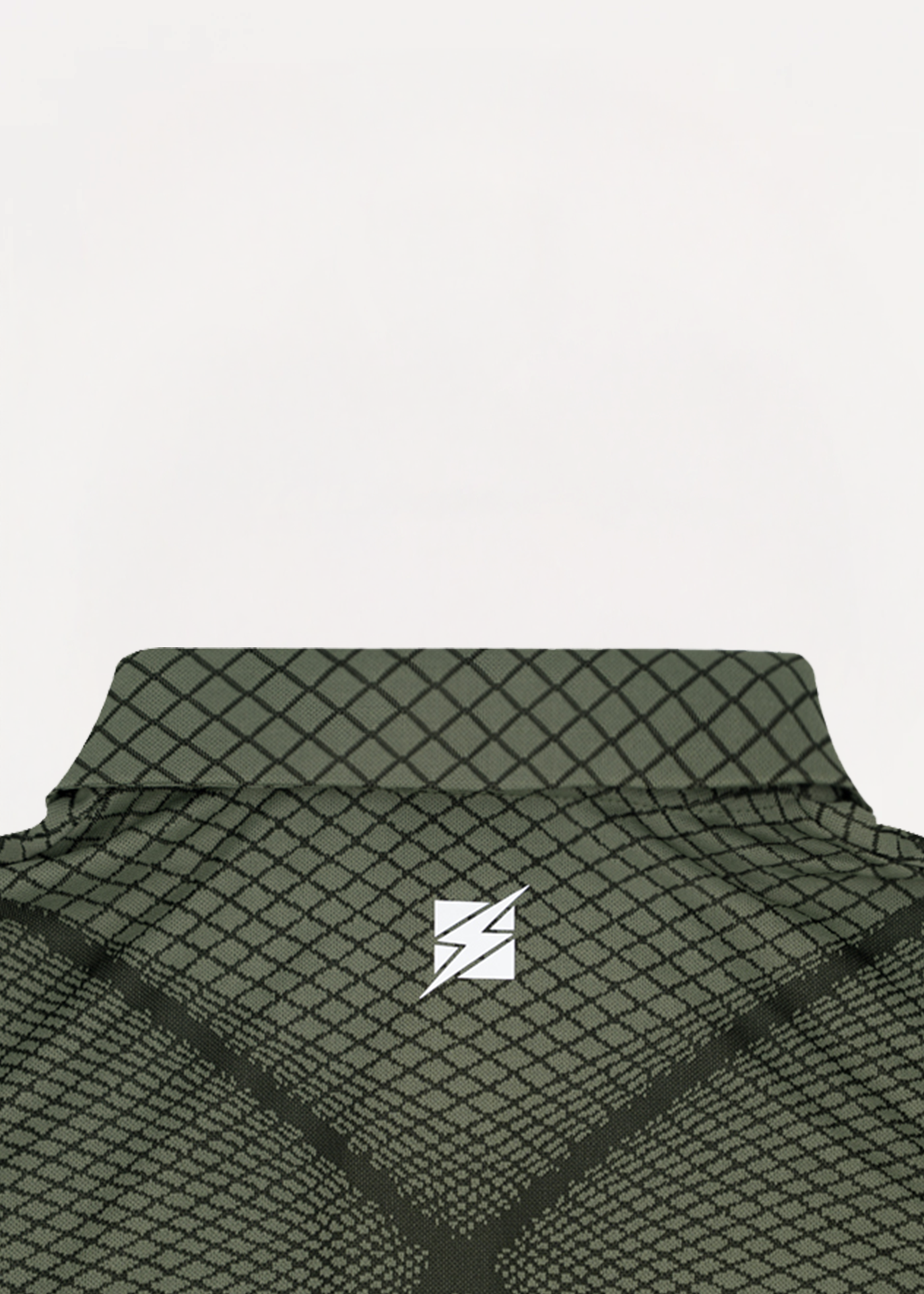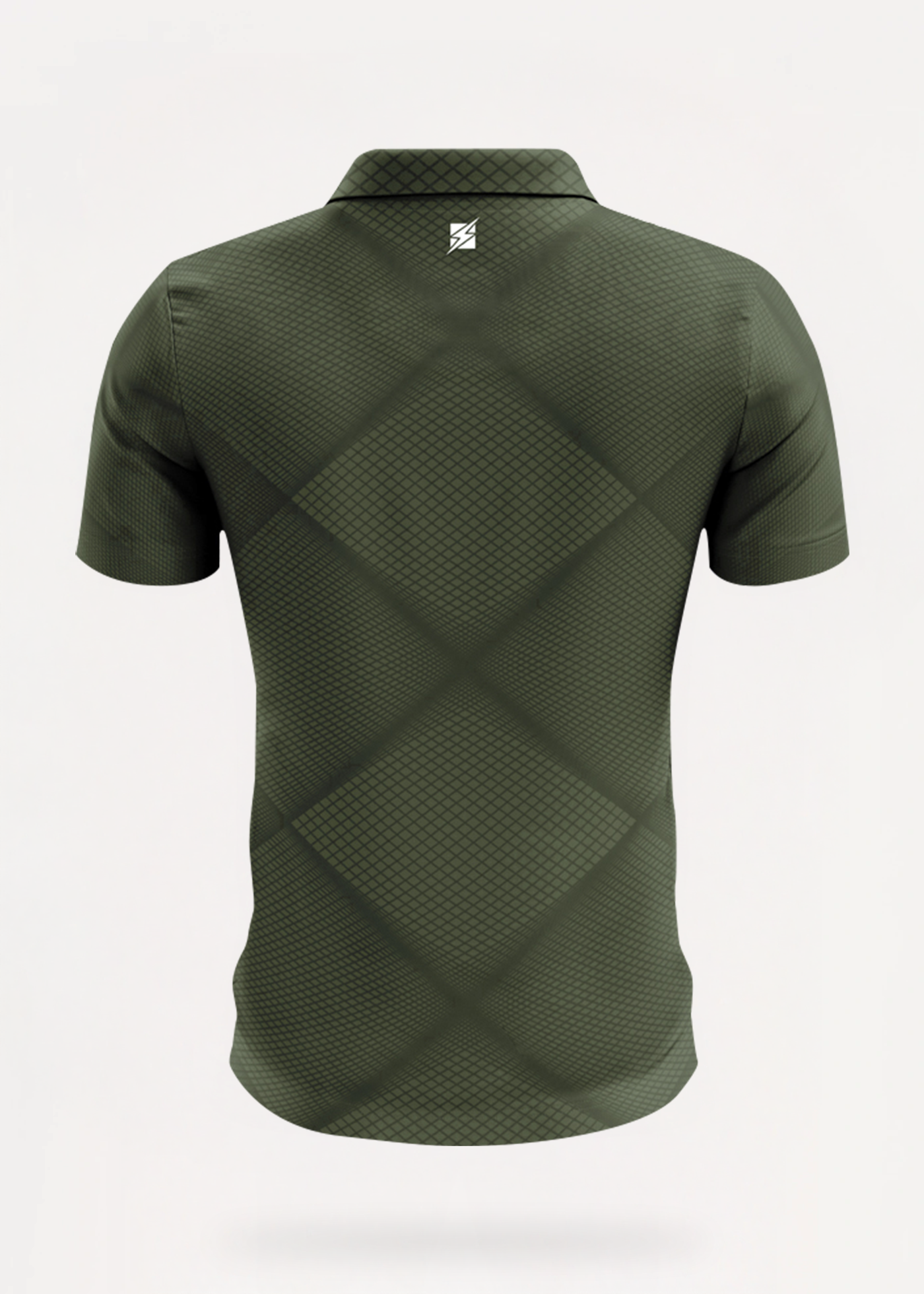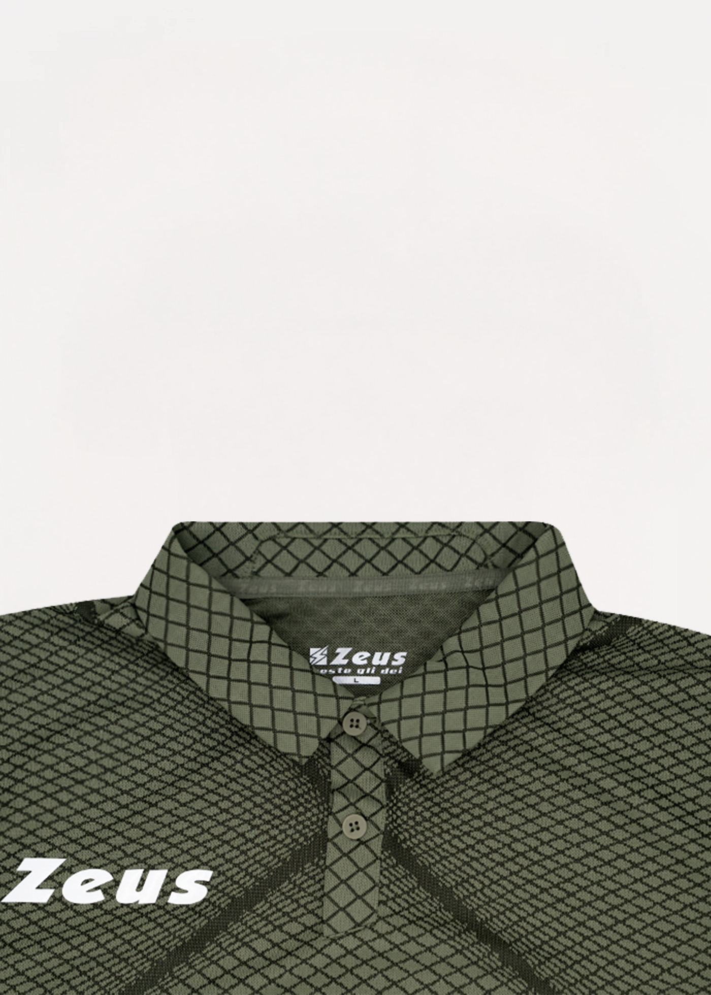 Short-sleeved polo shirt featuring a sophisticated and elegant jacquard diamond pattern. Button-down collar, silicone Zeus logo.
