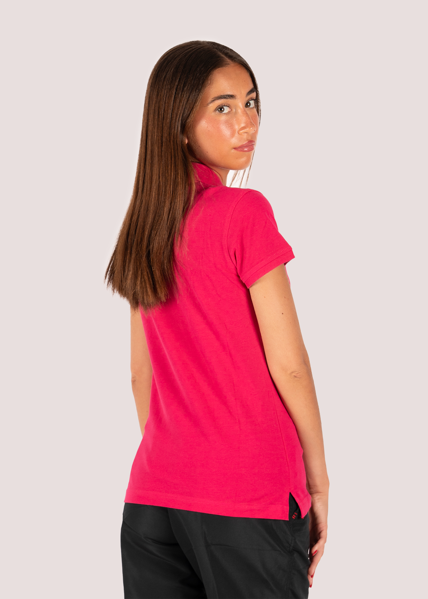 The Promo Woman polo shirt is made of 100% cotton, with a standard cut that enhances the female silhouette. Perfect for a casual and versatile look, ideal for leisure or informal events.