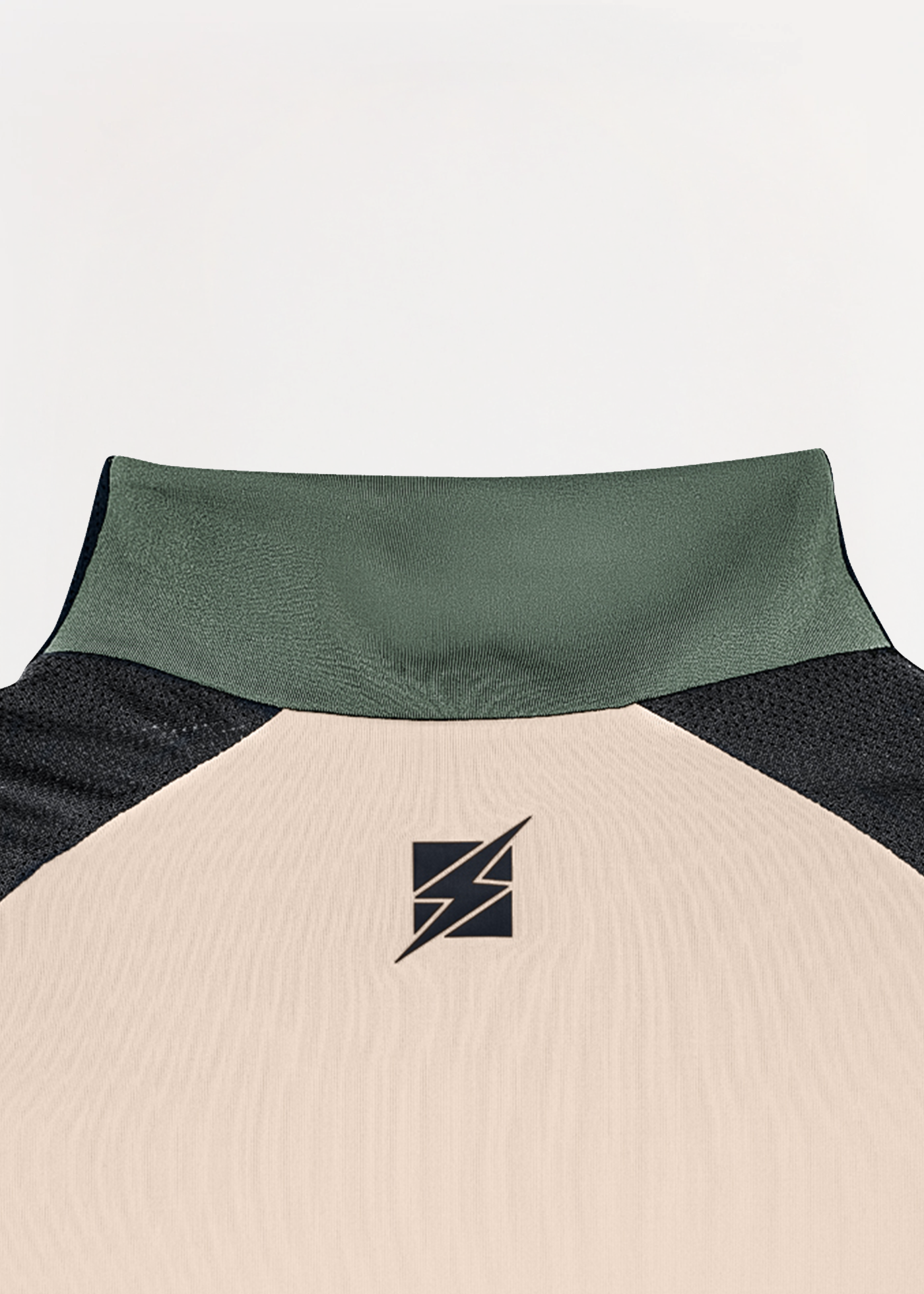 Training suit with half zip. Made with advanced 4D System technology. Silicon logos. Inserts on the sleeves, sides, and back in jacquard, giving a dynamic look and increased durability over time.