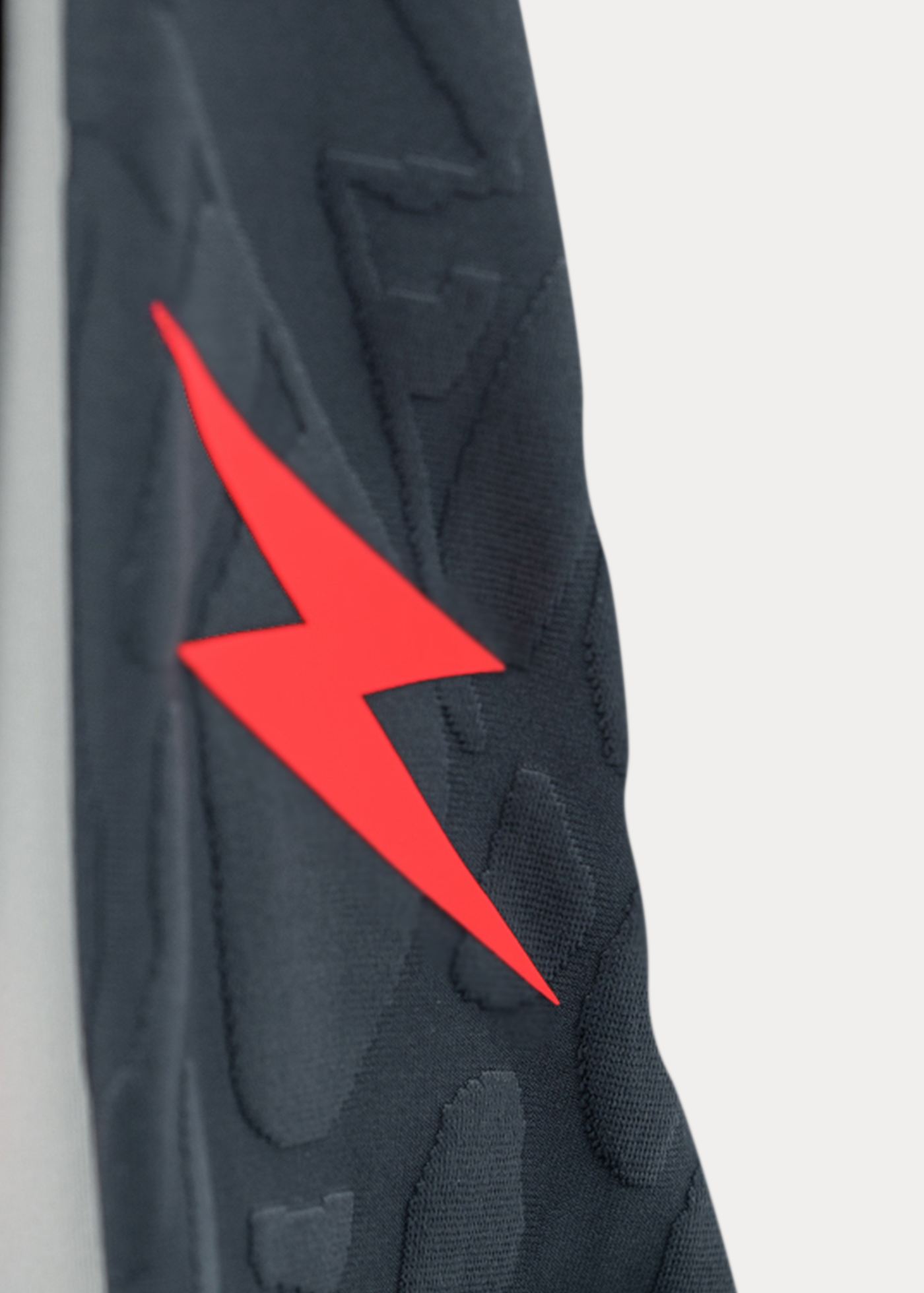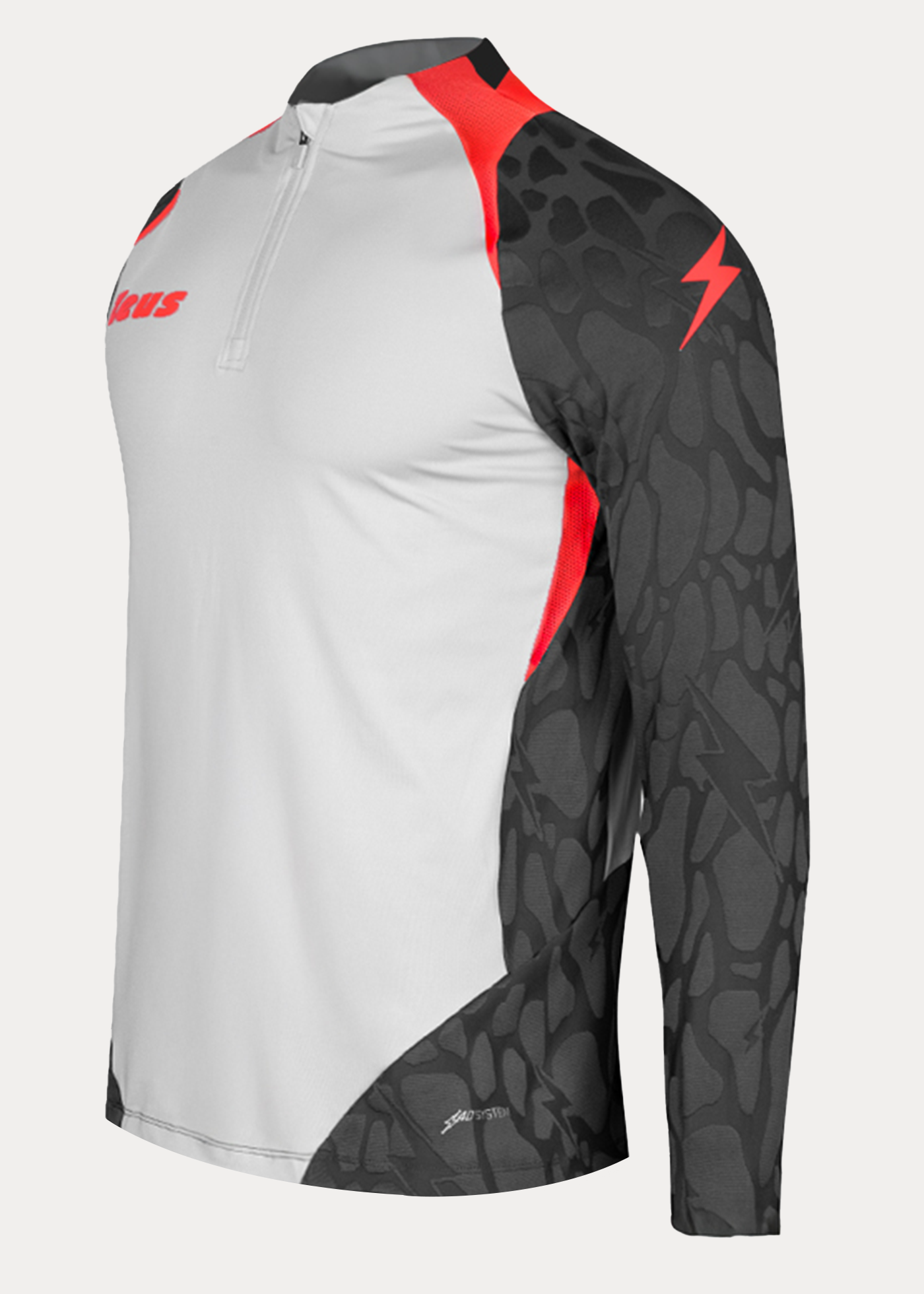 Training suit with half zip. Made with advanced 4D System technology. Silicon logos. Inserts on the sleeves, sides, and back in jacquard, giving a dynamic look and increased durability over time.