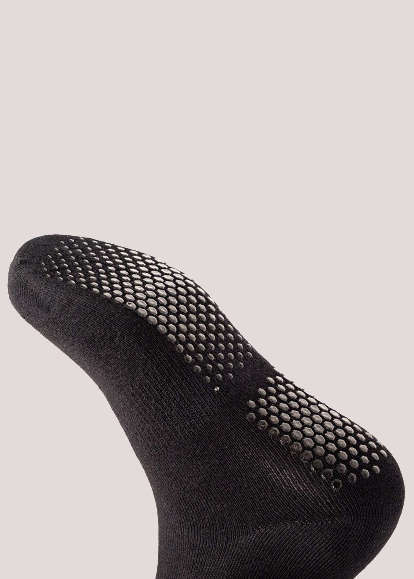 Calcetín con suela antideslizante diseñado para garantizar un ajuste cómodo, con un diseño resistente y confortable.