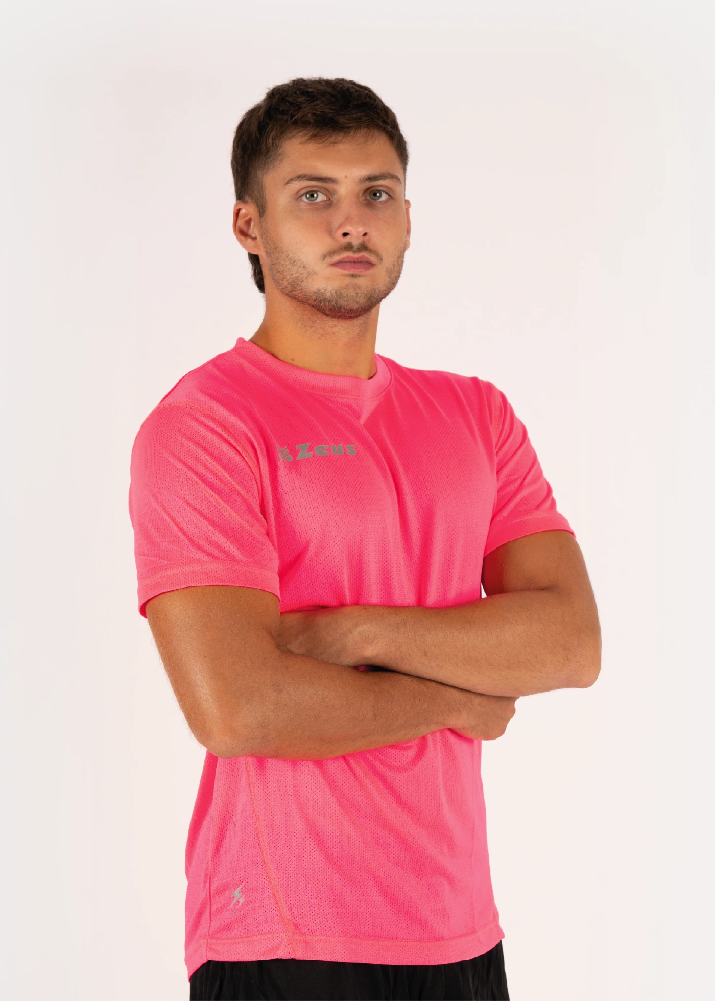 La camiseta Fit está hecha de malla microperforada 100% poliéster, ofreciendo la máxima transpirabilidad durante el entrenamiento. El ajuste estándar garantiza comodidad y libertad de movimiento, ideal para actividades deportivas intensas.