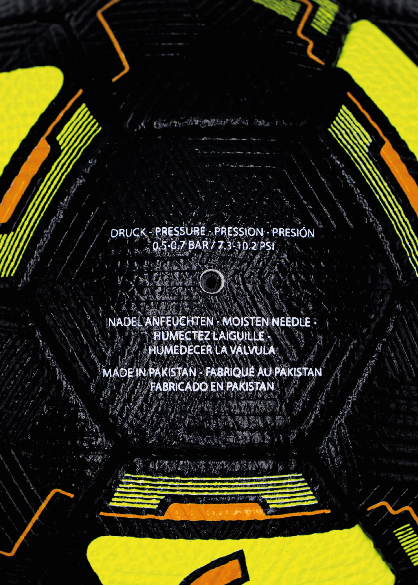 Balón cosido a mano, ideal para entrenamientos intensivos y partidos oficiales. Compuesto por 32 paneles, garantiza una trayectoria estable y una forma esférica perfecta. Superficie texturizada en relieve para una mejor aerodinámica y durabilidad.
