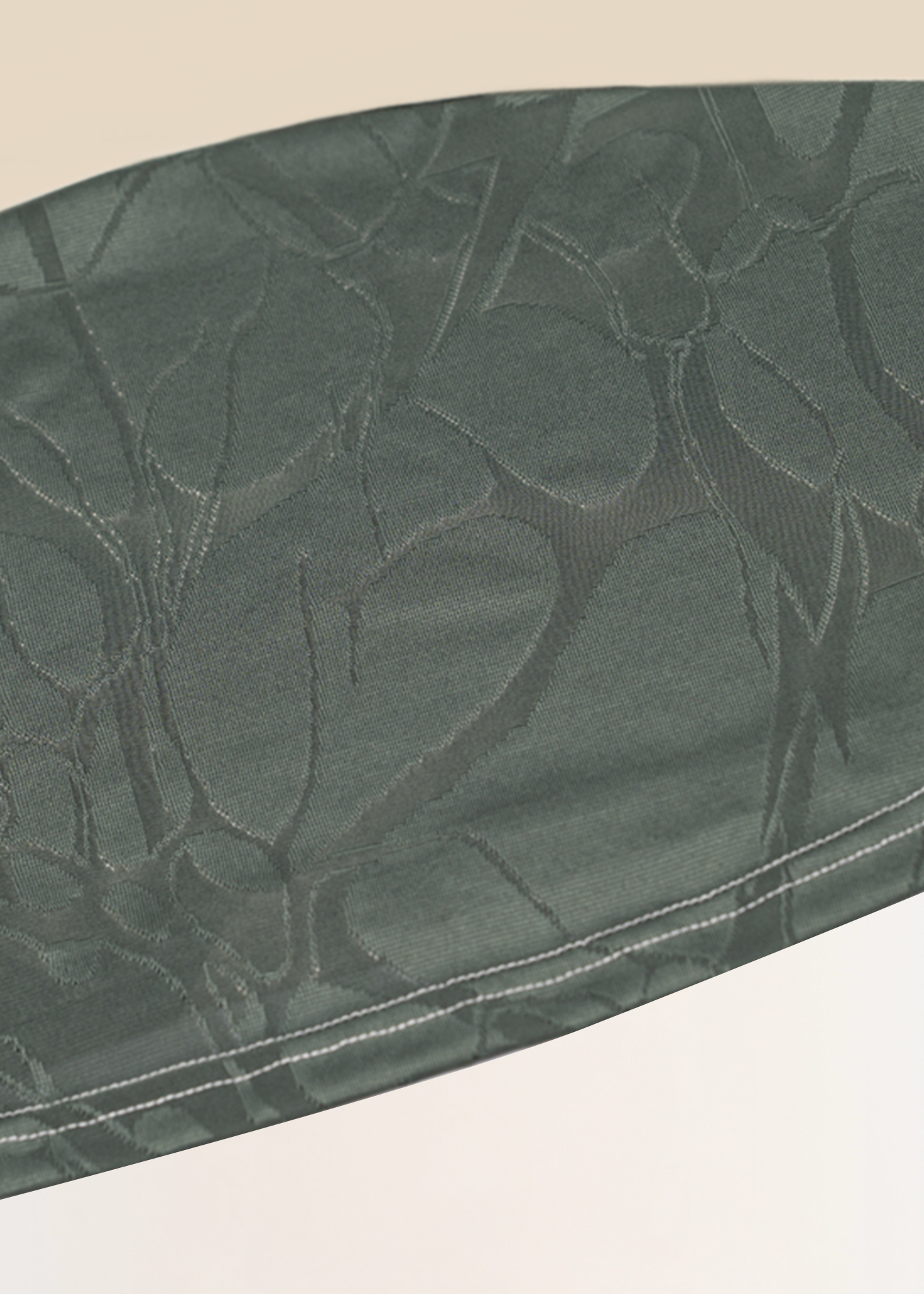 Au moment de l’impression sérigraphique avec passage au four, il est important de se rappeler de tenir la tête totalement allongée pour éviter que les parties colorées ne colorent les parties blanches. Nous recommandons de ne replier la tête qu’après avoir été partiellement refroidie.