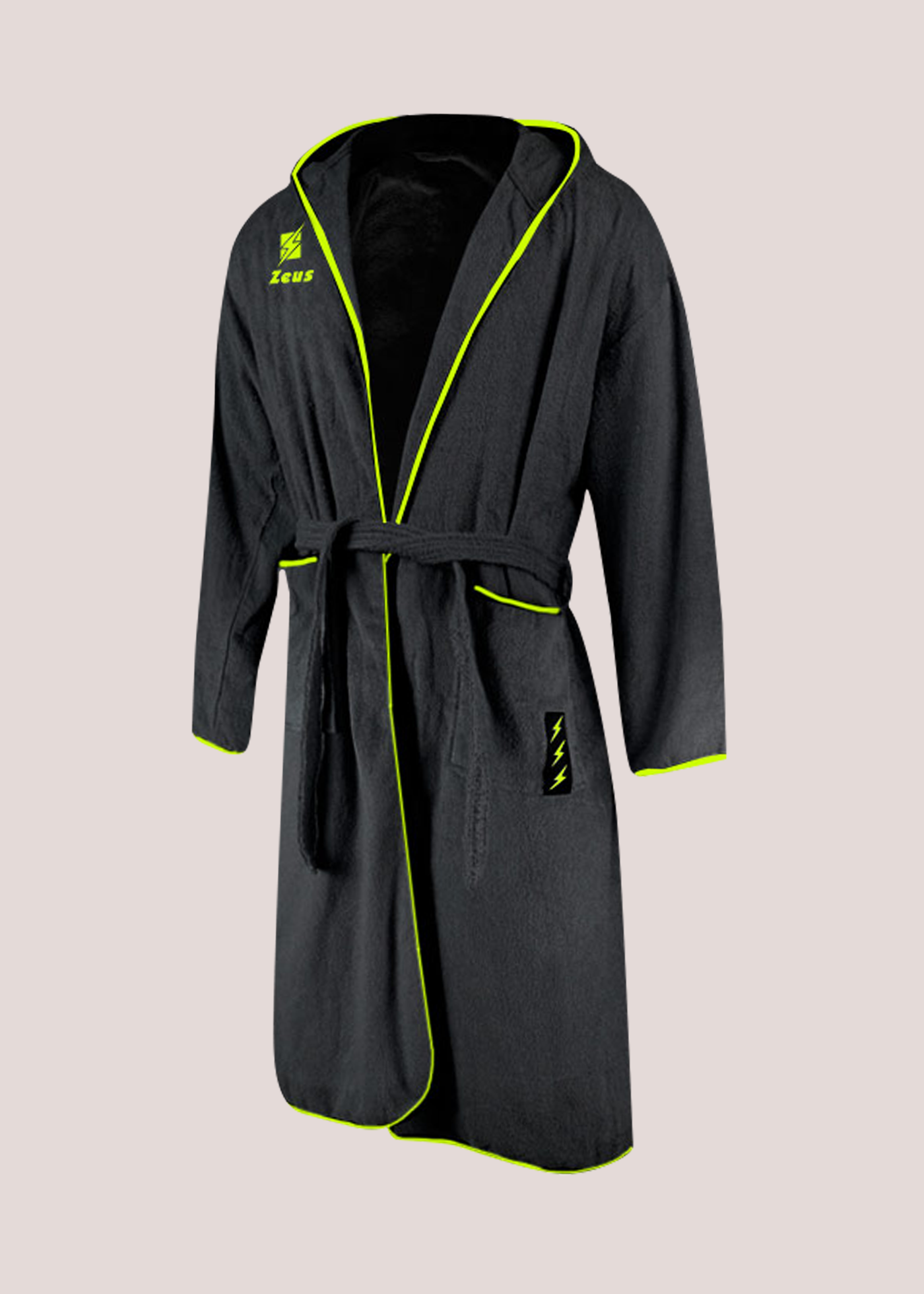 L'accappatoio Swim è realizzato in tessuto morbido e ad asciugatura rapida, dotato di cappuccio e pratiche tasche laterali. Perfetto per la piscina o la doccia, offre comfort e funzionalità con un tocco di stile.