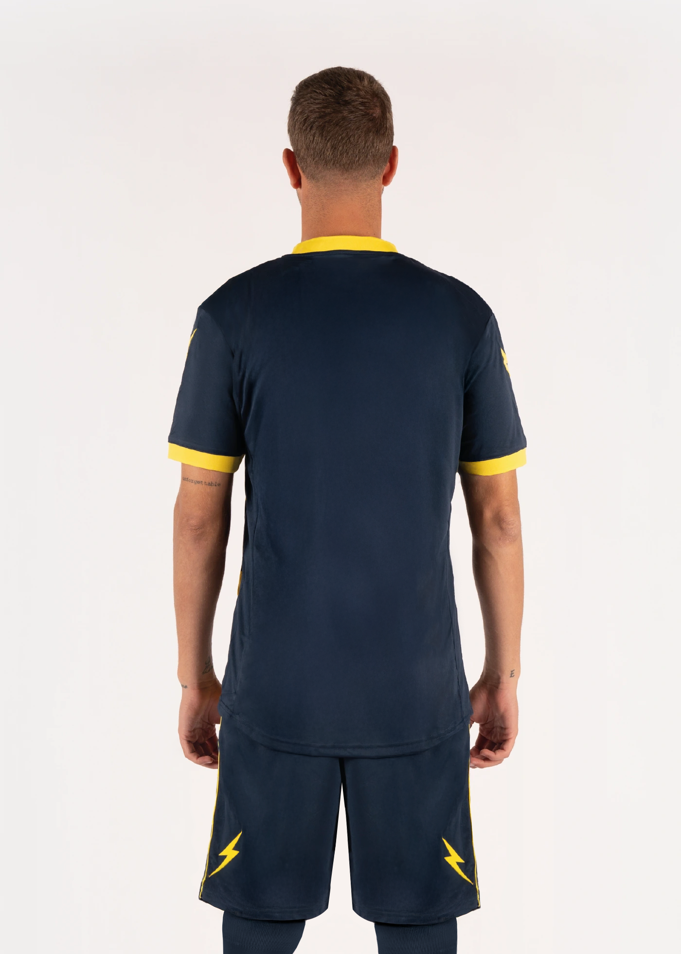 Il Kit Kosmo si distingue per la stampa sublimatica a motivi geometrici e loghi in silicone. Realizzato in 100% poliestere, offre una vestibilità slim fit, garantendo traspirabilità e comfort ottimali durante le attività sportive più intense.