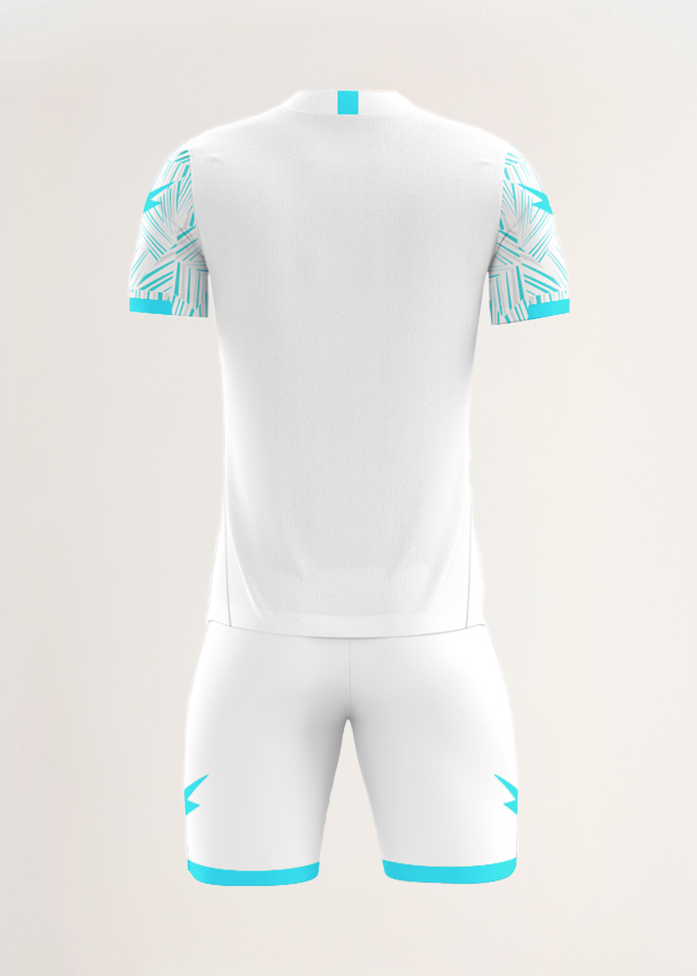 Kit composto da maglia a maniche corte con trama stampata in sublimatico, abbinata a pantaloncino. Il design è arricchito da inserti su maniche e colletto, presenti sia nella parte anteriore che posteriore. Loghi Zeus applicati in silicone.