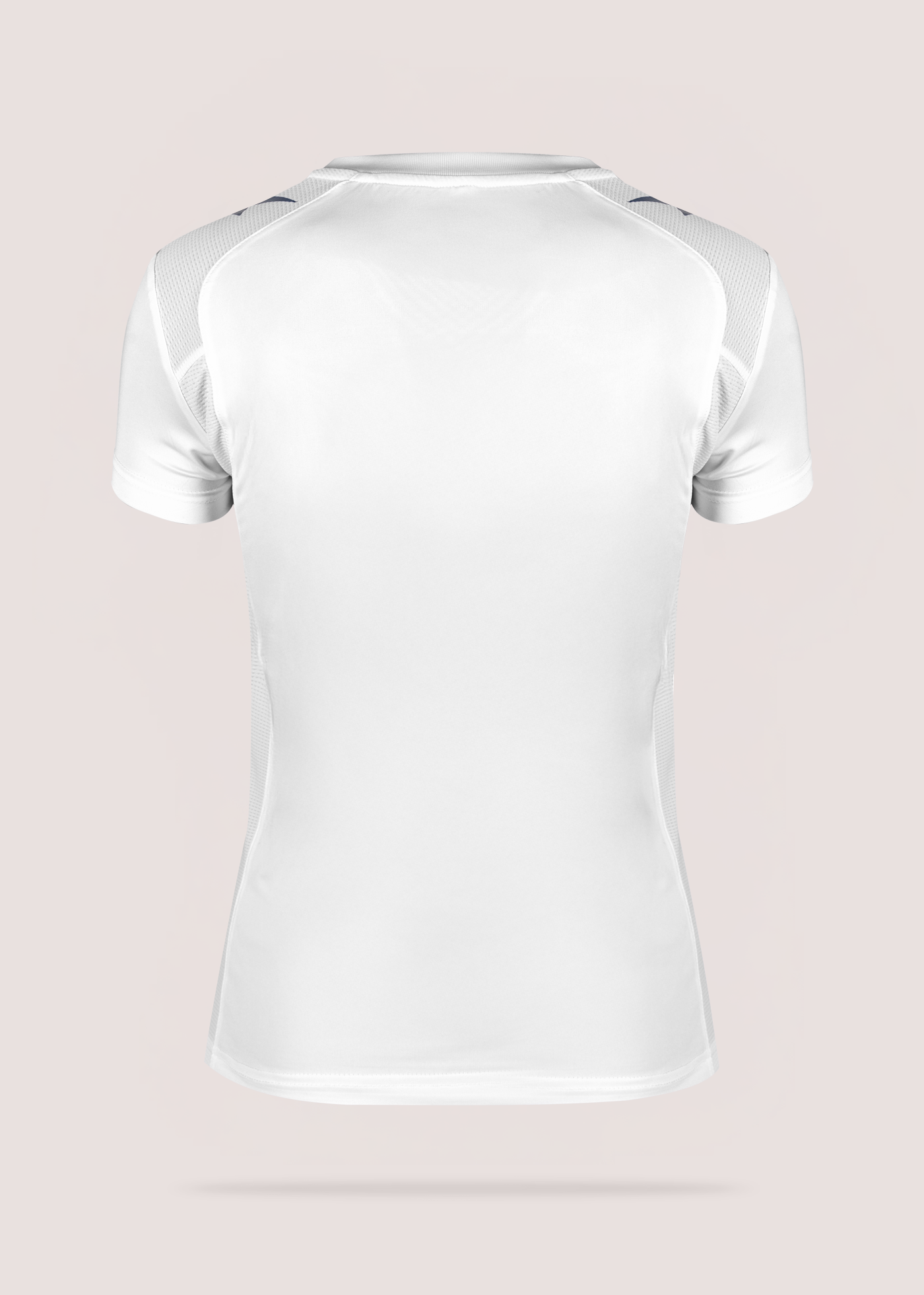 Maglia tecnica da volley femminile a maniche corte, realizzata con tessuto leggero e resistente, dotata di mesh laterali traspiranti. Il design è completato da un colletto a V. Loghi Zeus stampati per un look professionale e riconoscibile in campo.